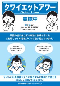 クワイエットアワーとは、感覚過敏のある方に配慮し、一時的に音や光の刺激を緩和して営業する取り組みのことです。
