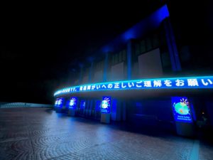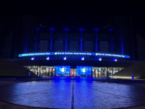 昨年よりご協力いただいております、沖縄アリーナさん、琉球ゴールデンキングスさんに今年もご協力いただき、4/2~4/8に沖縄アリーナの正面のブルーライトアップを昨年よりもパワーアップして実施いただきました。また、4/6・4/7の琉球ゴールデンキングスVS千葉ジェッツ戦ではセンサリールームを設置いただき、3組の方にご利用いただきました。